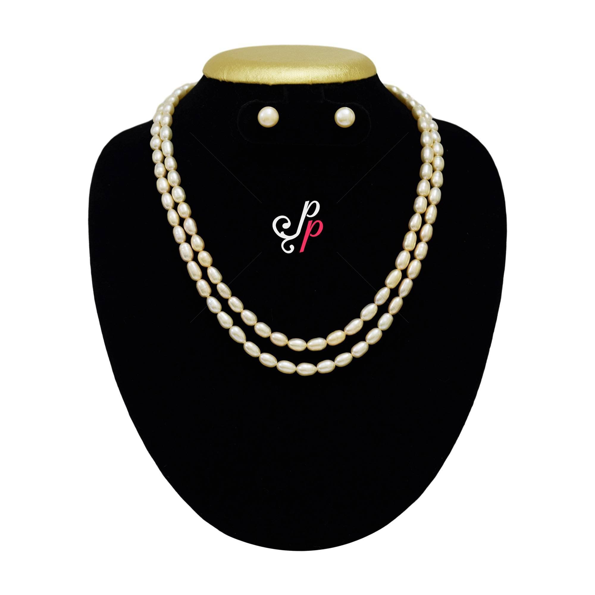 2 Lines Plain Pink Pearl Necklace in Long Oval Pearls