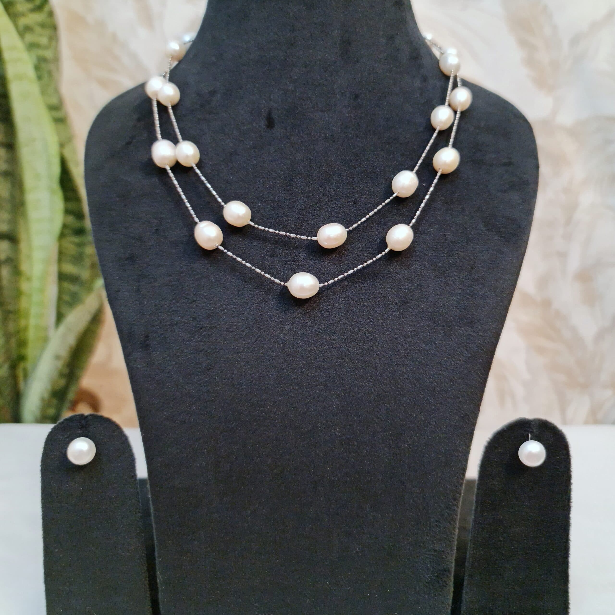 38Inch Long Lovely 9-10mm Oval Offwhite Pearls With Silver Finish Chain