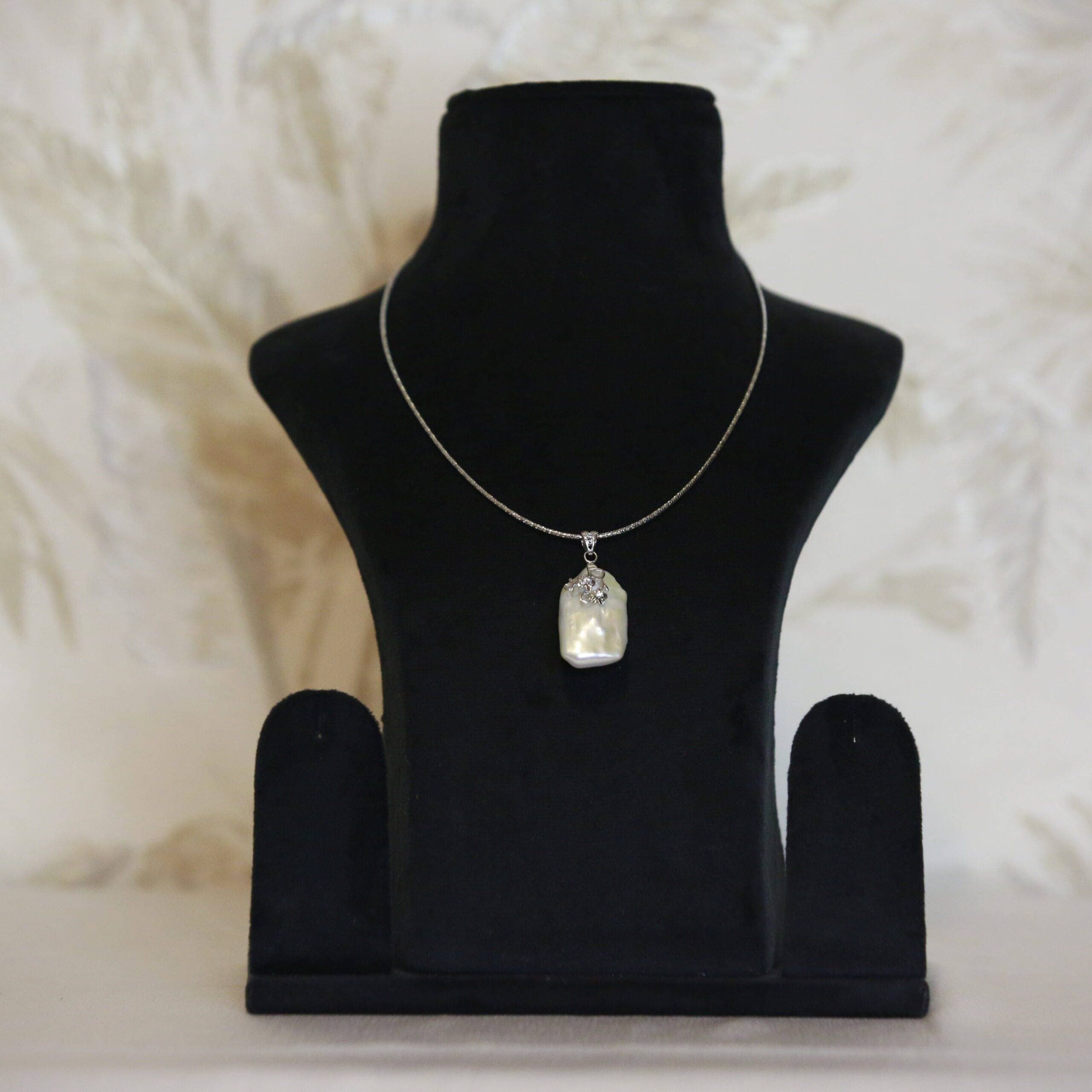 Inspired by the beauty of nature, this large, irregularly shaped baroque pendant is unique.