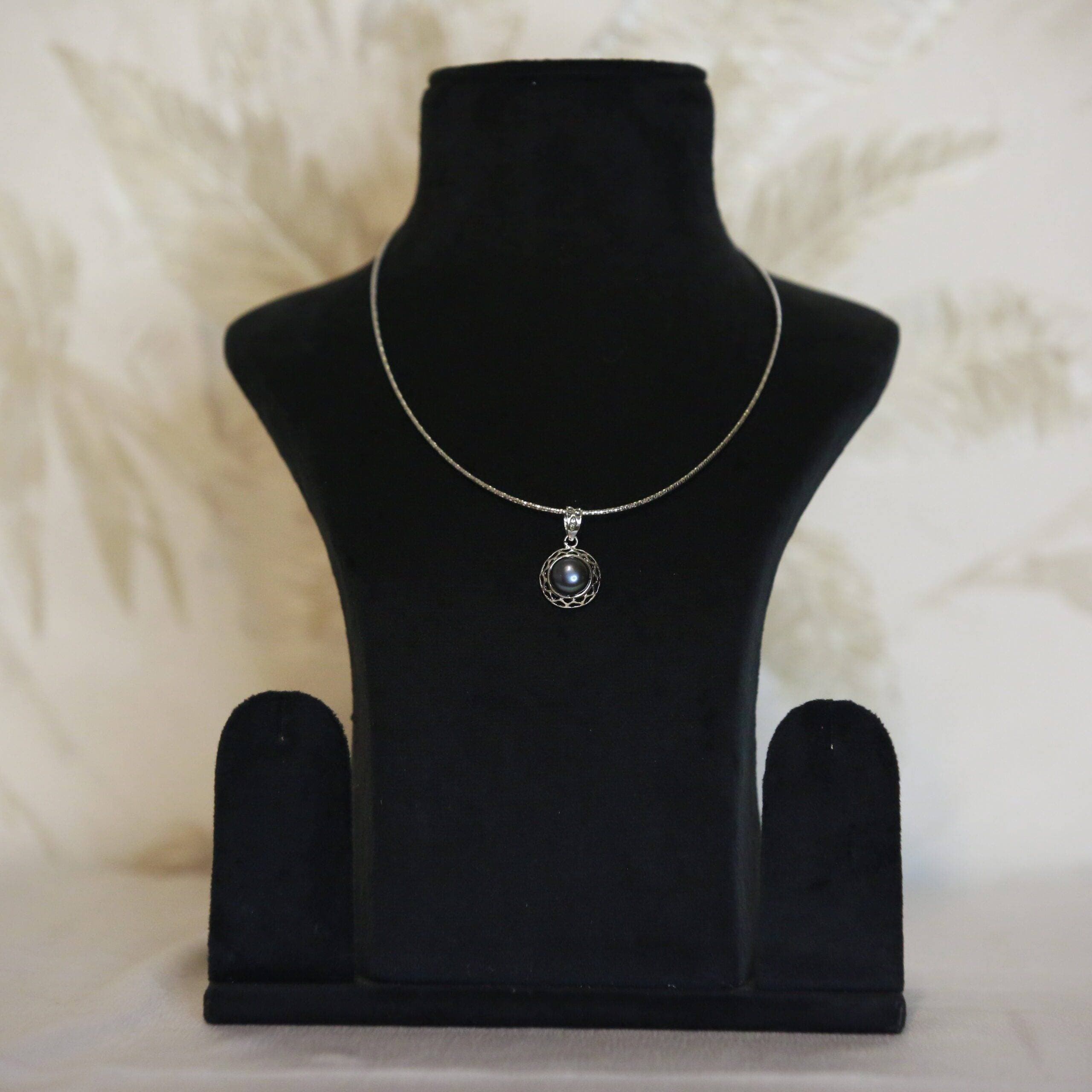 The pearl used in this pendant is Bluish Grey (dyed).