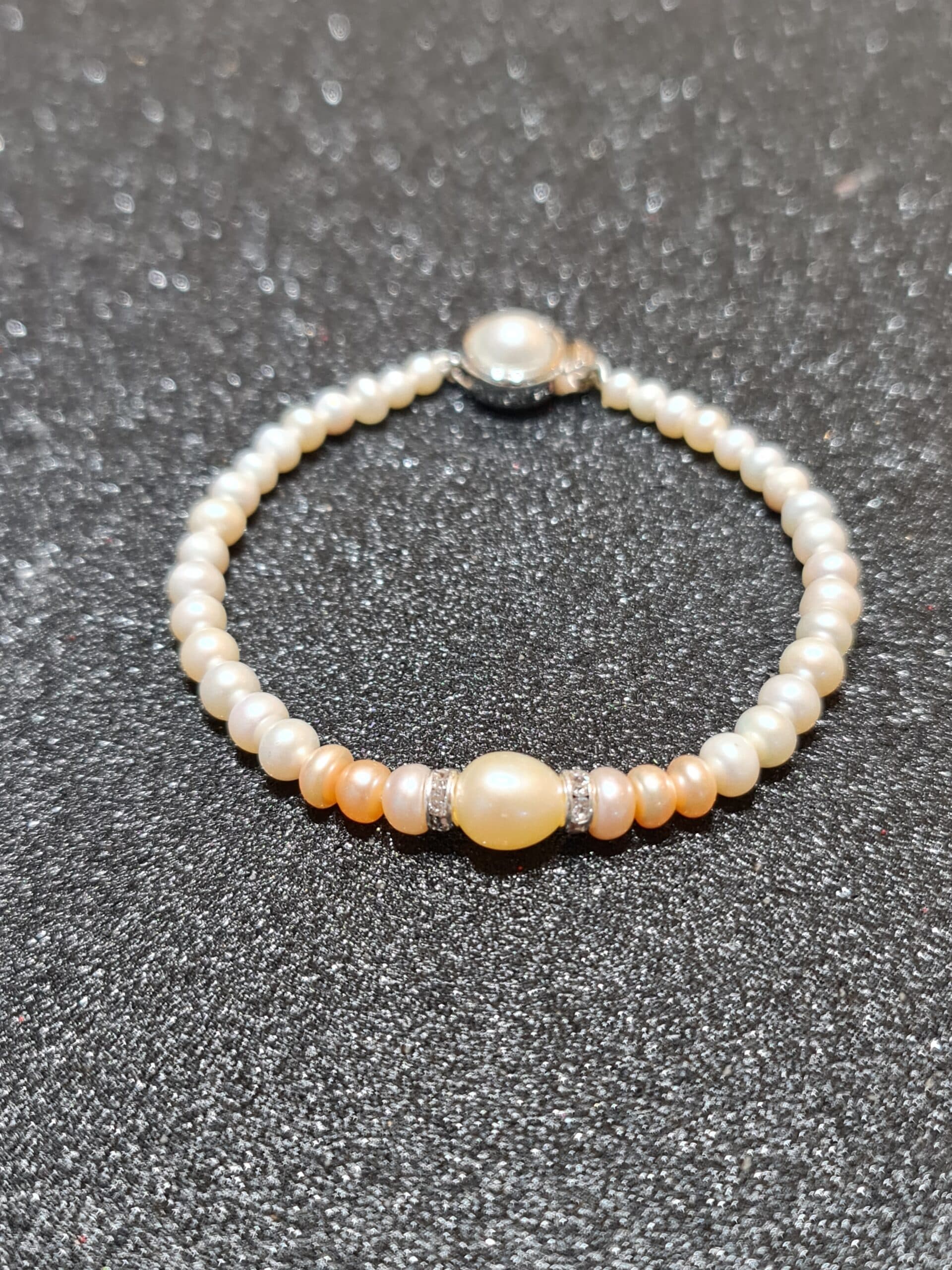 Gorgeous Graduated White Pearls Bracelet With Ombre Peach Pearls