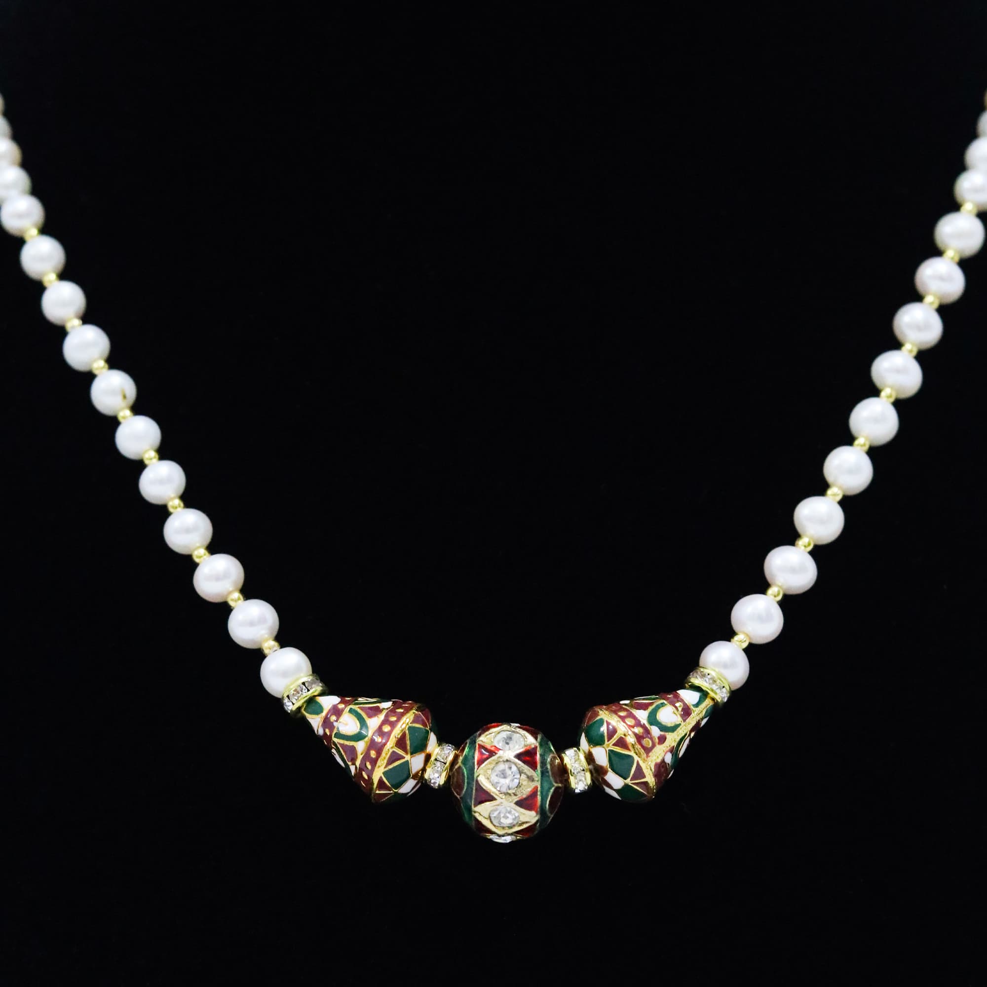 Graceful Semi-Round Pearl Necklace With Meenakari Beads