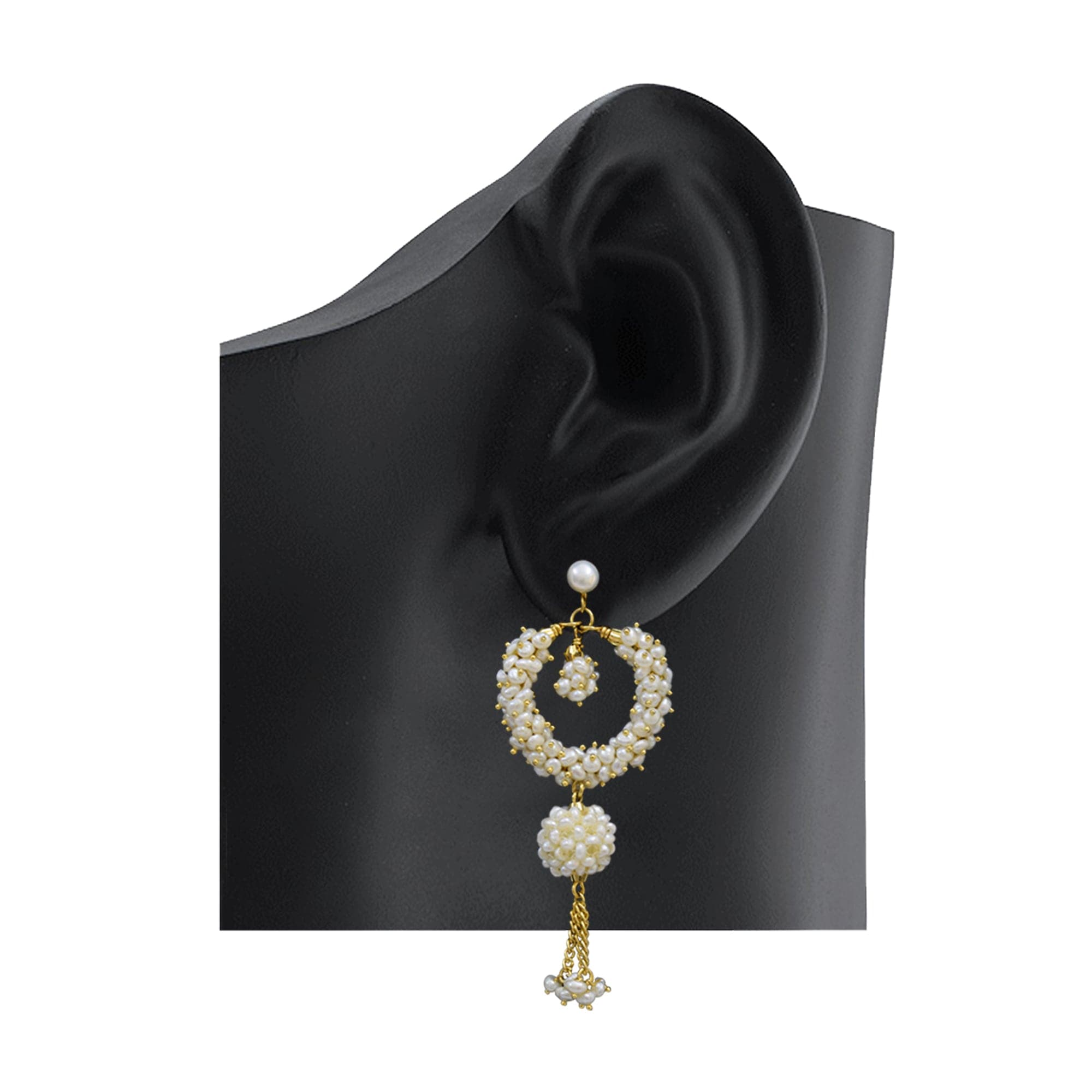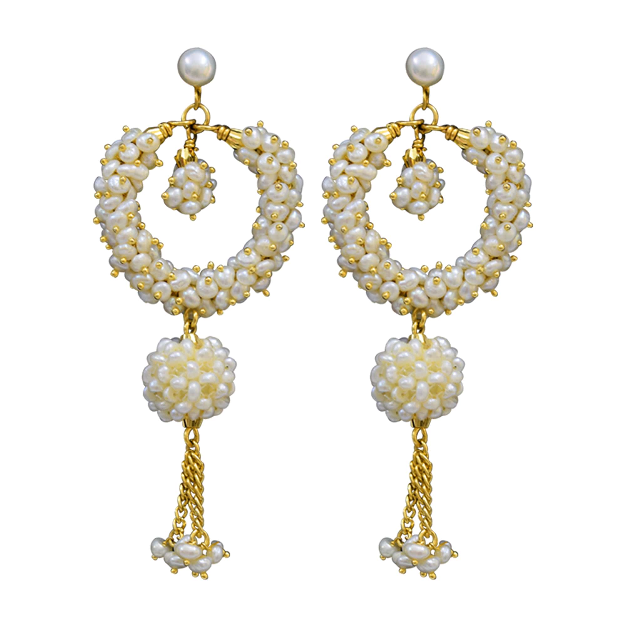 Long Chand Bali Earrings in Seed Pearls