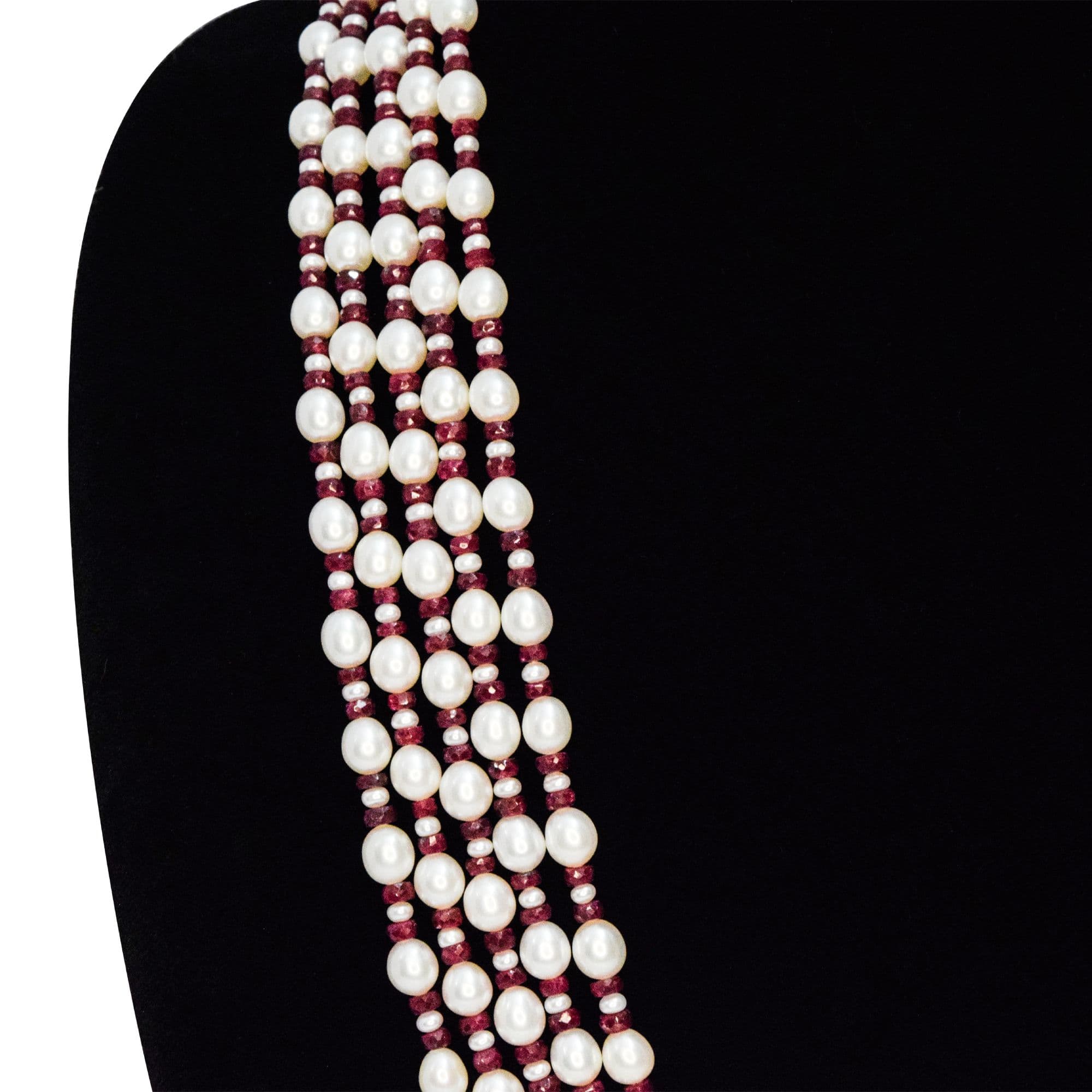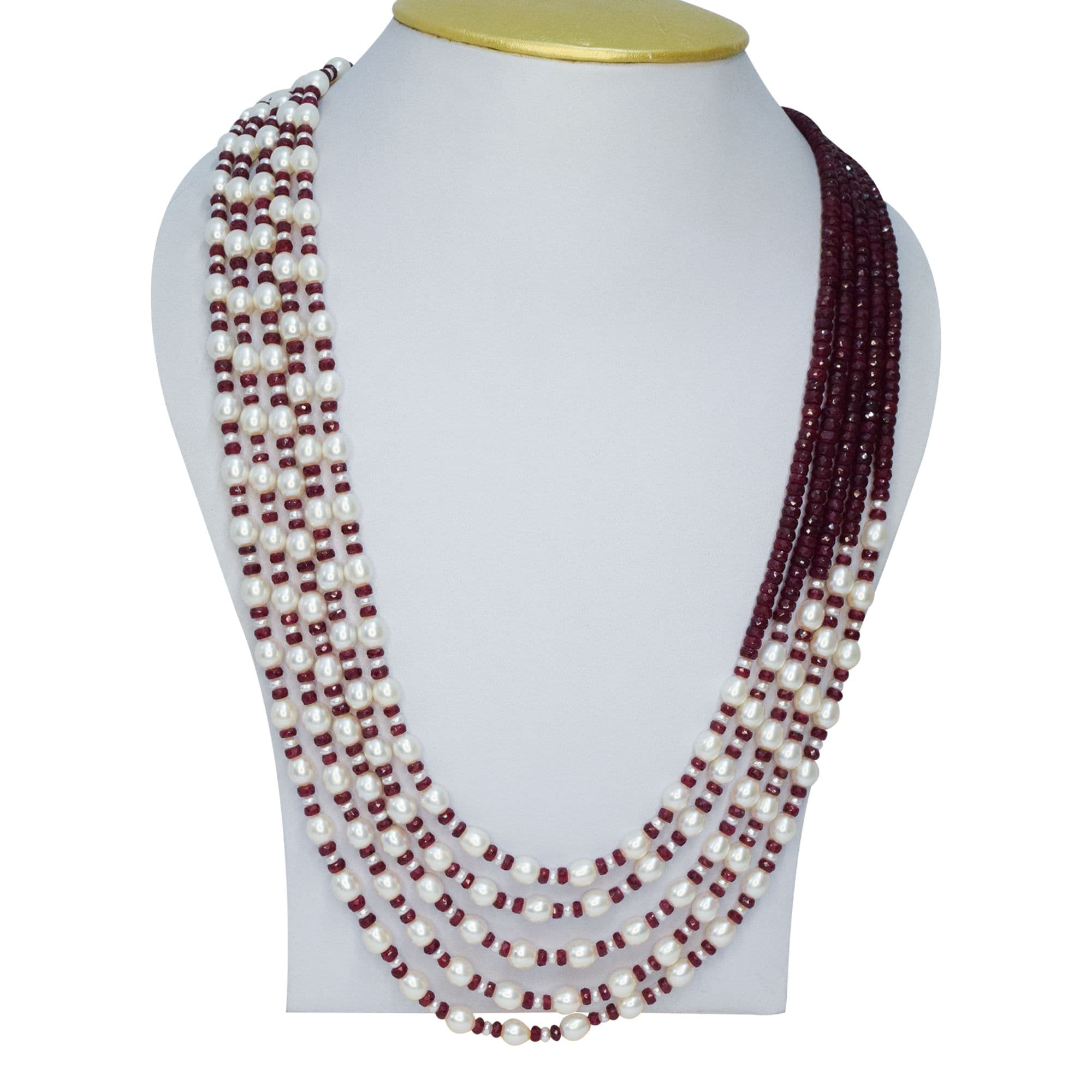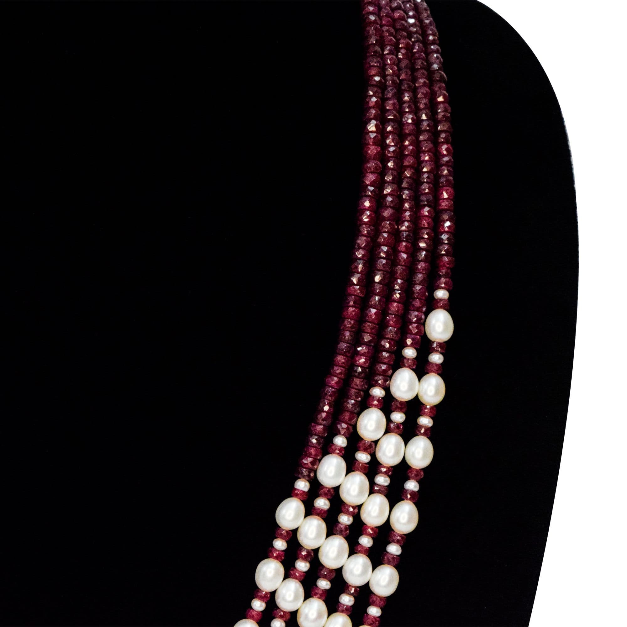 Luxe Multi-line Oval Pearls Mala With Real Rubies & Seed Pearls