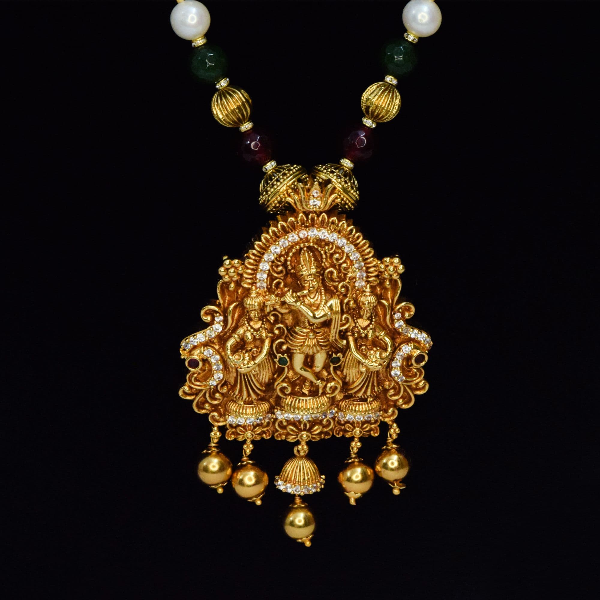 This pendant represents fine craftsmanship with its intricately carves statues of Lord Krishna & his gopikas