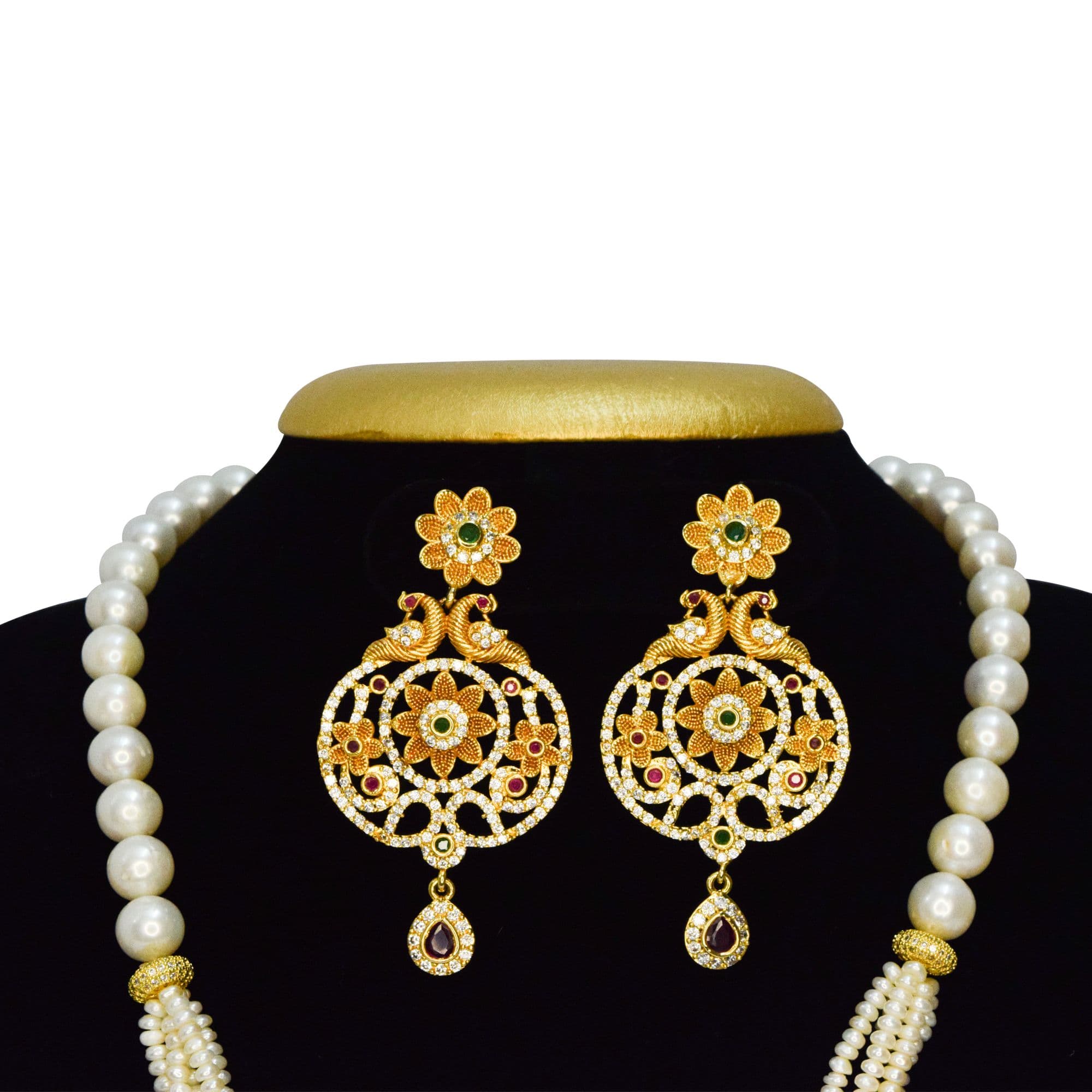 Magnificent Multi-Row White Pearls Mala With Ornate Peacock Pendant