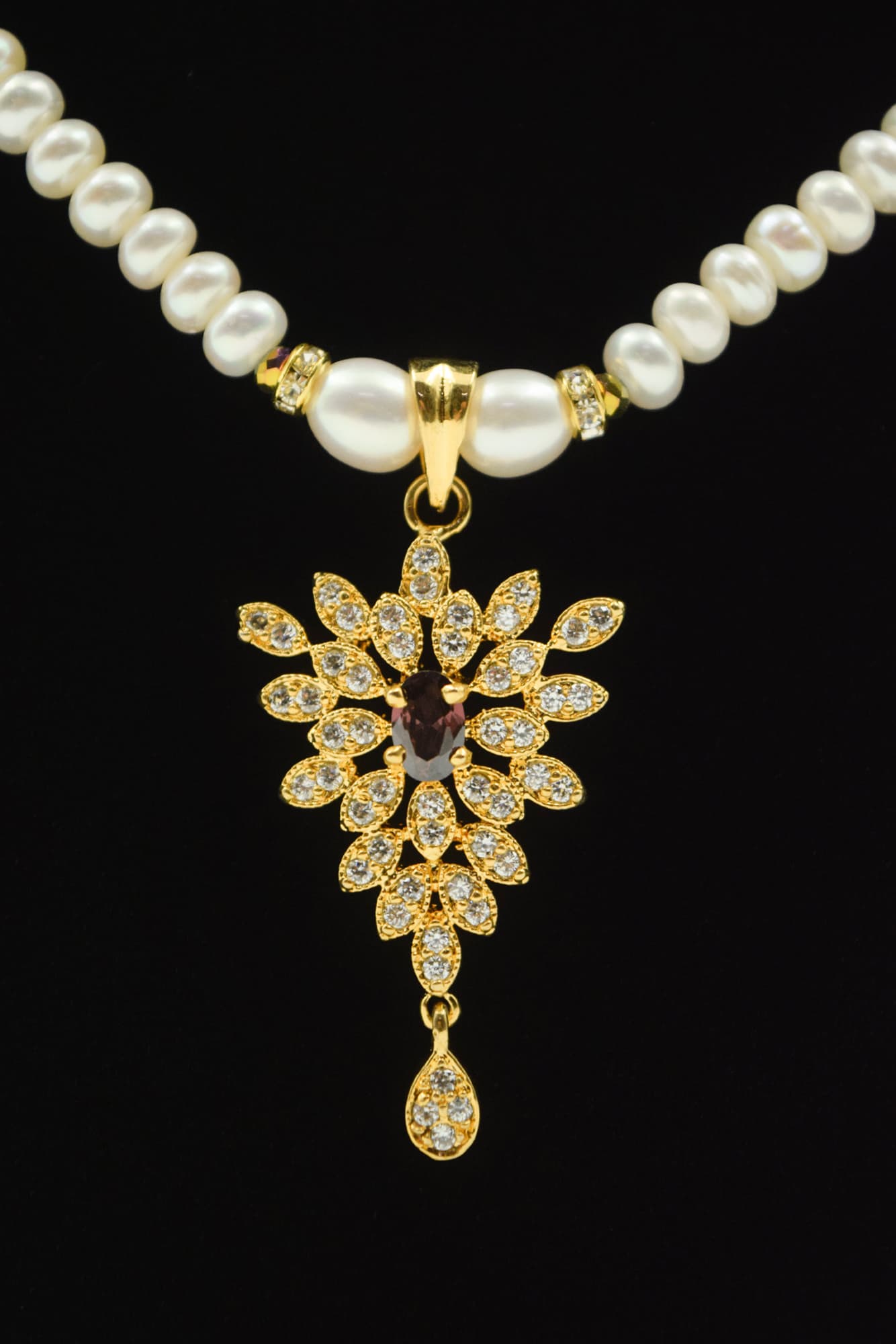 Radiant White Pearls Necklace With Pretty CZ & Amethyst Pendant
