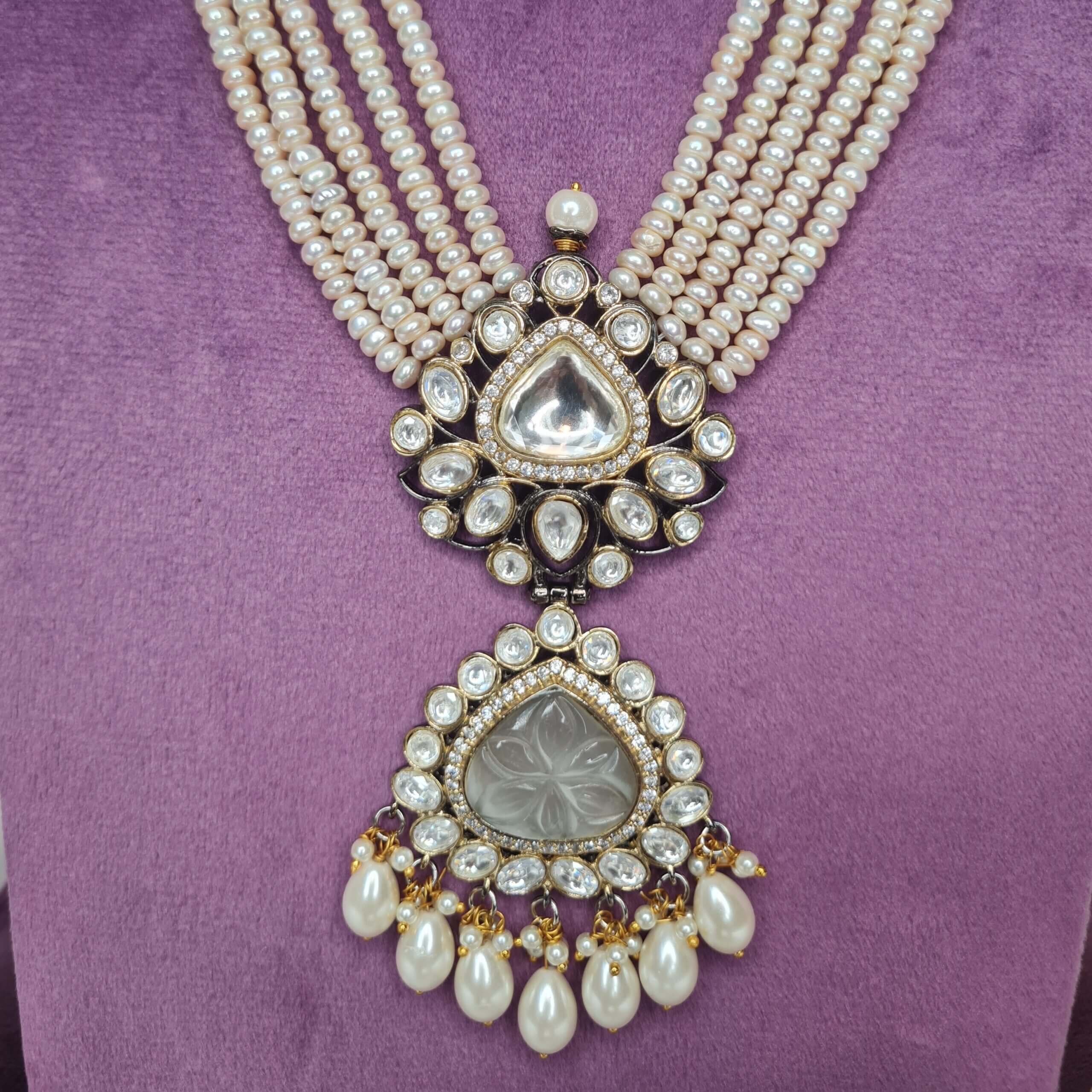 Regal Multirow Haar Featuring Off-White Pearls With Subtle Victorian Pendant