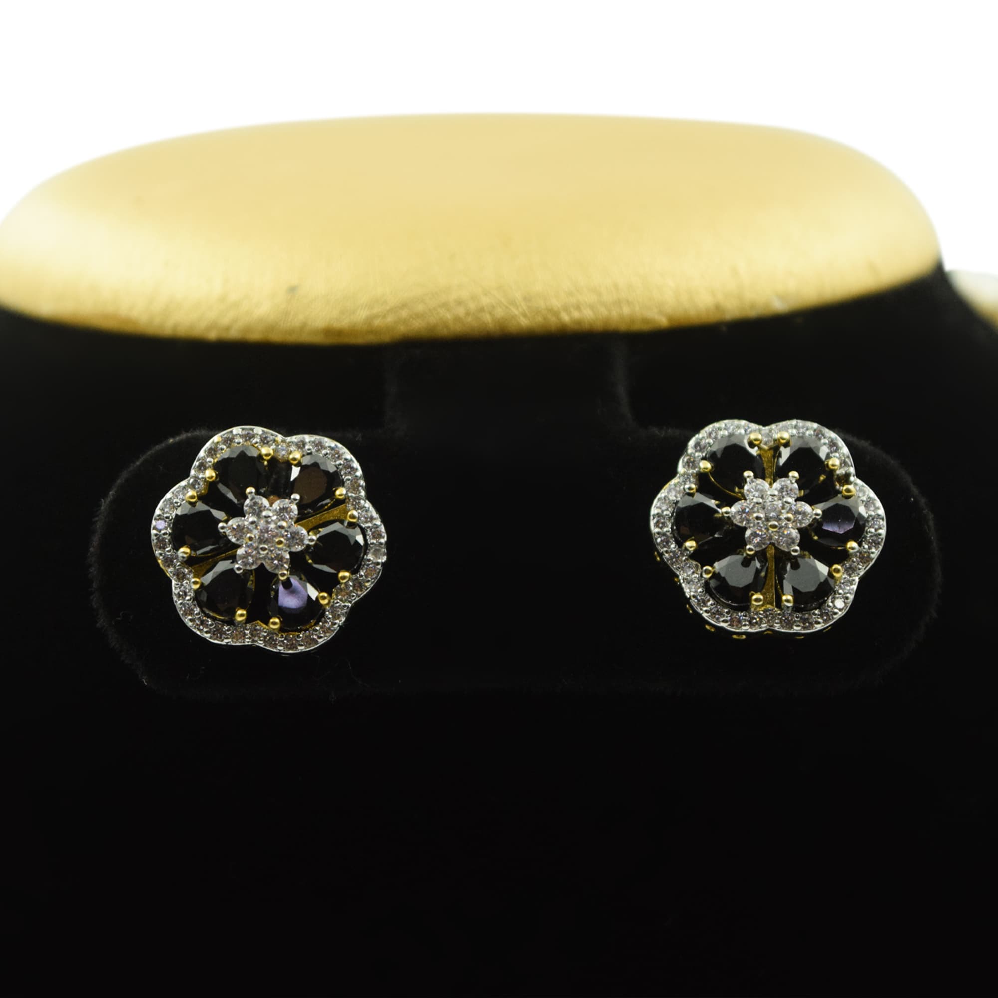 Several shiny zircons surround the petals making them radiant & surreal.