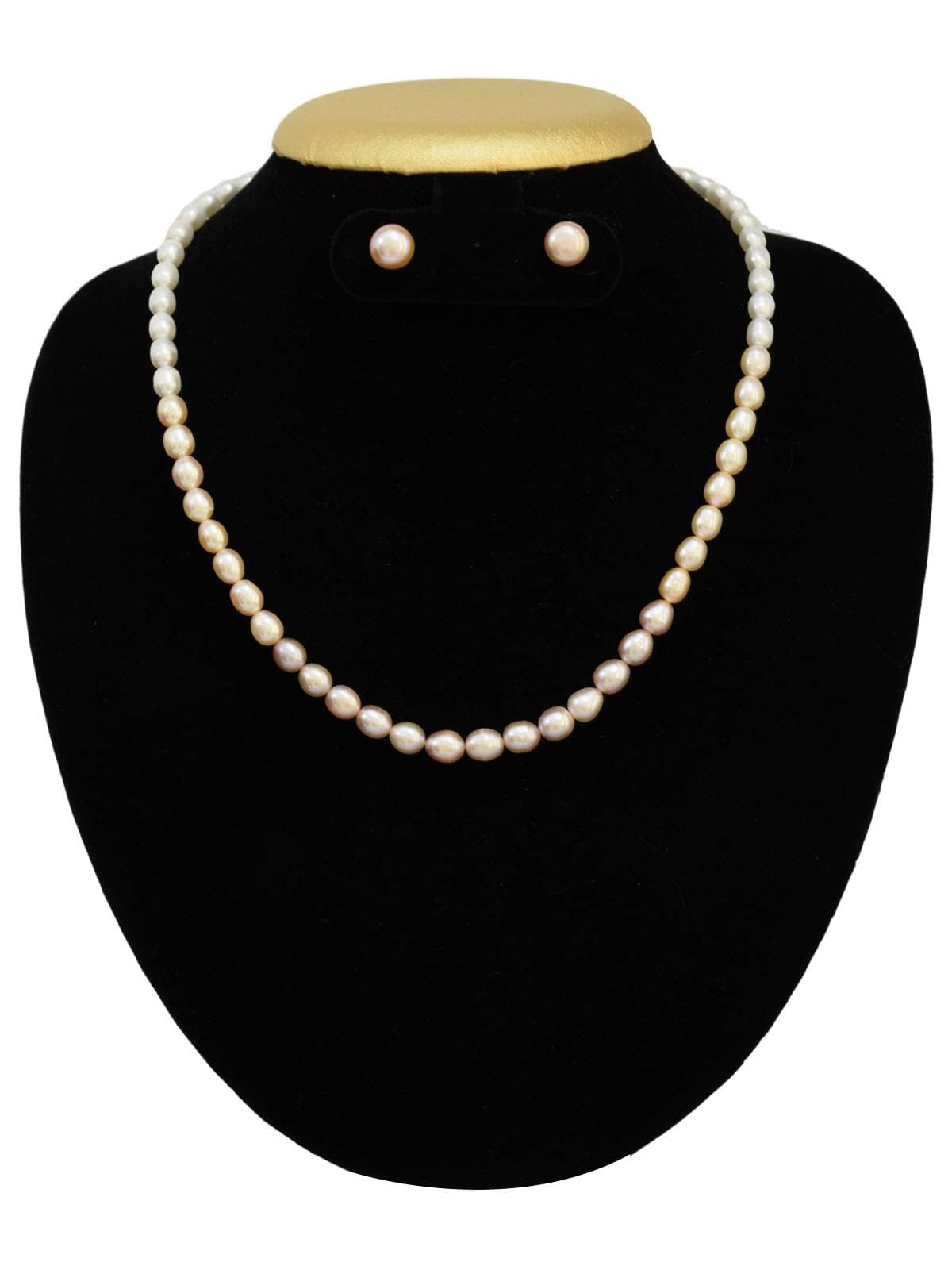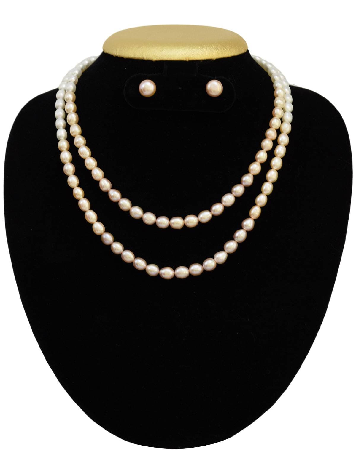 Shiny Multi Pink Pearl Necklace Set in 7.5mm Long Oval Pearls