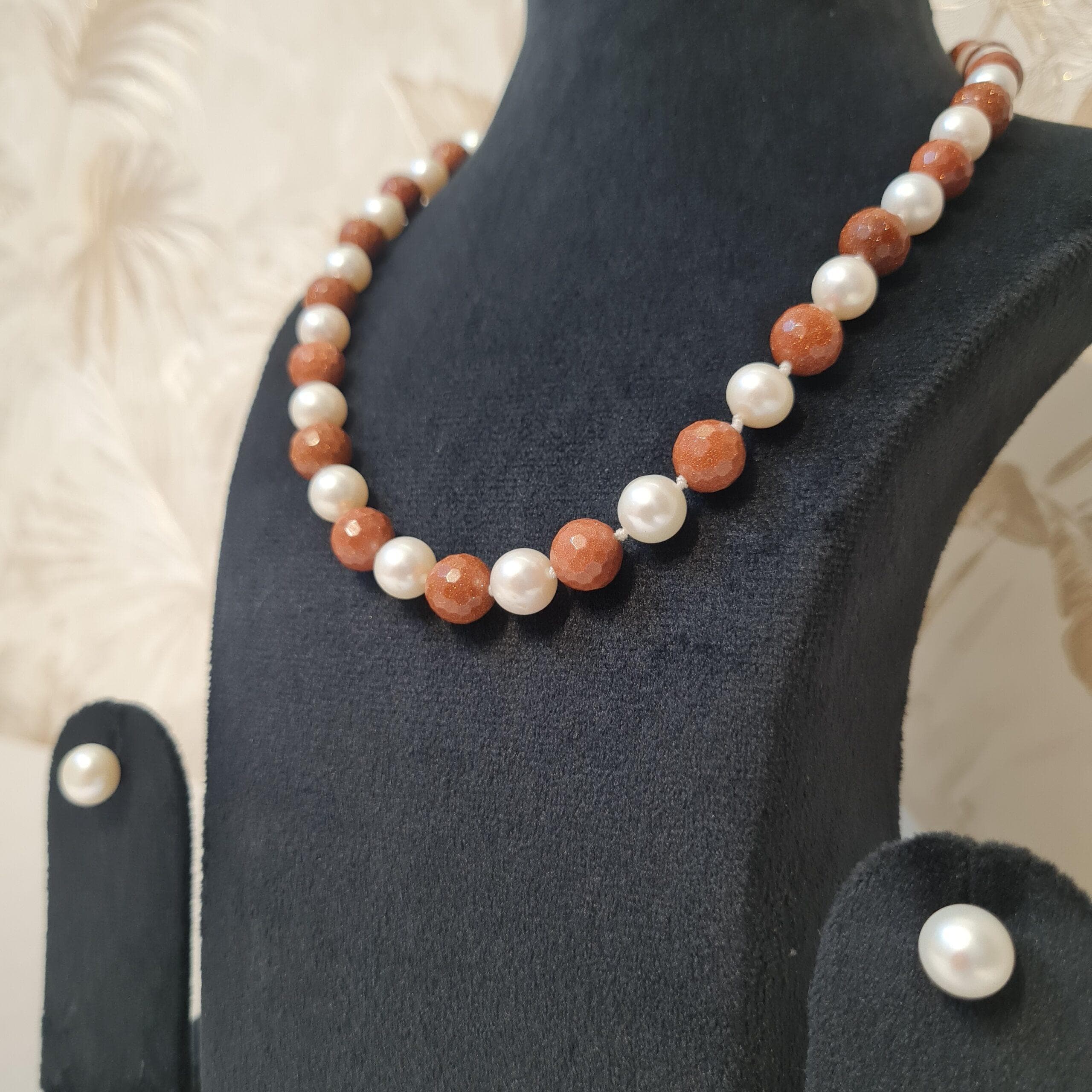 The sandstone beads and white pearls are alternatively strung together to make this outstanding jewellery!