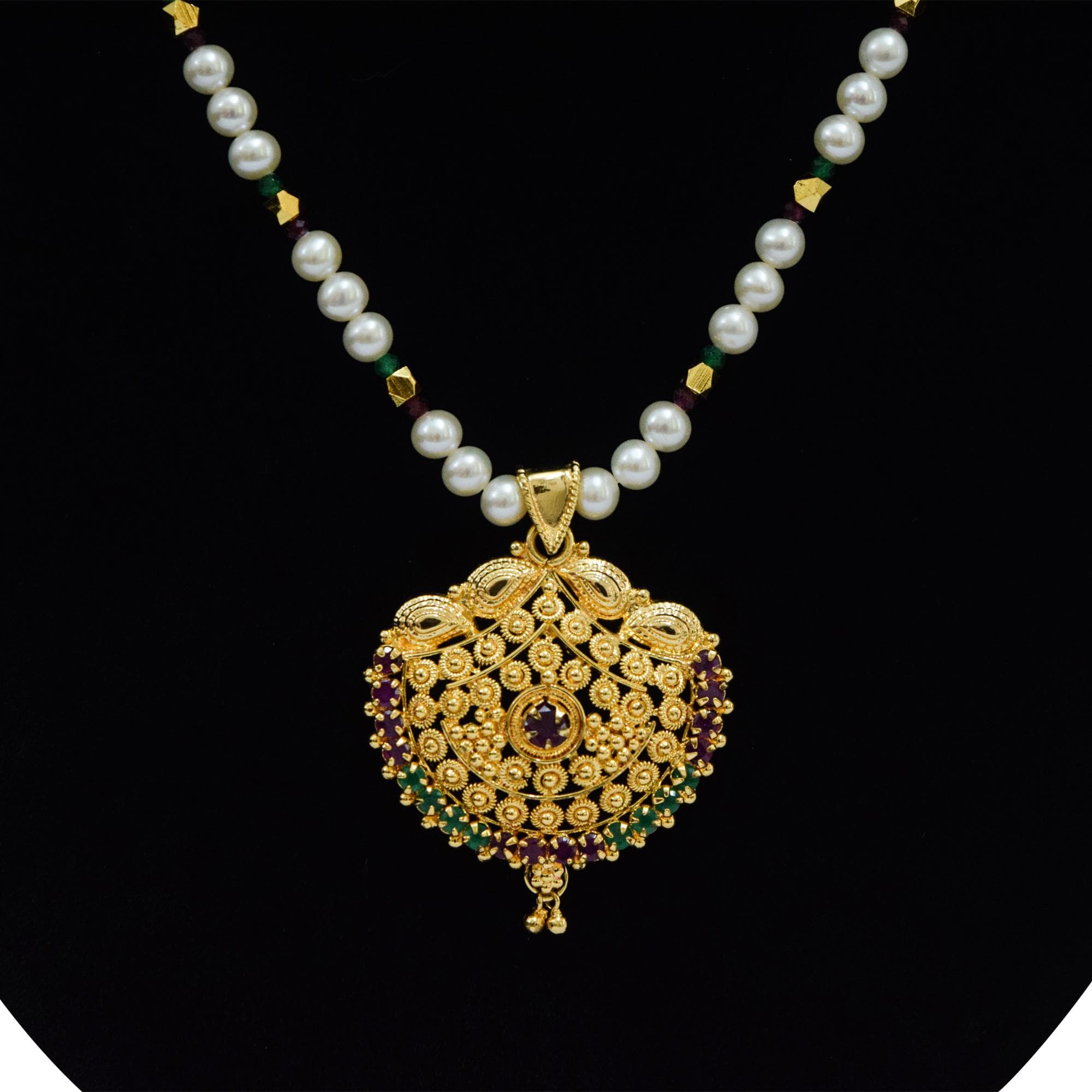 Traditional Pearl Necklace Set with Ruby and Emerald Stones
