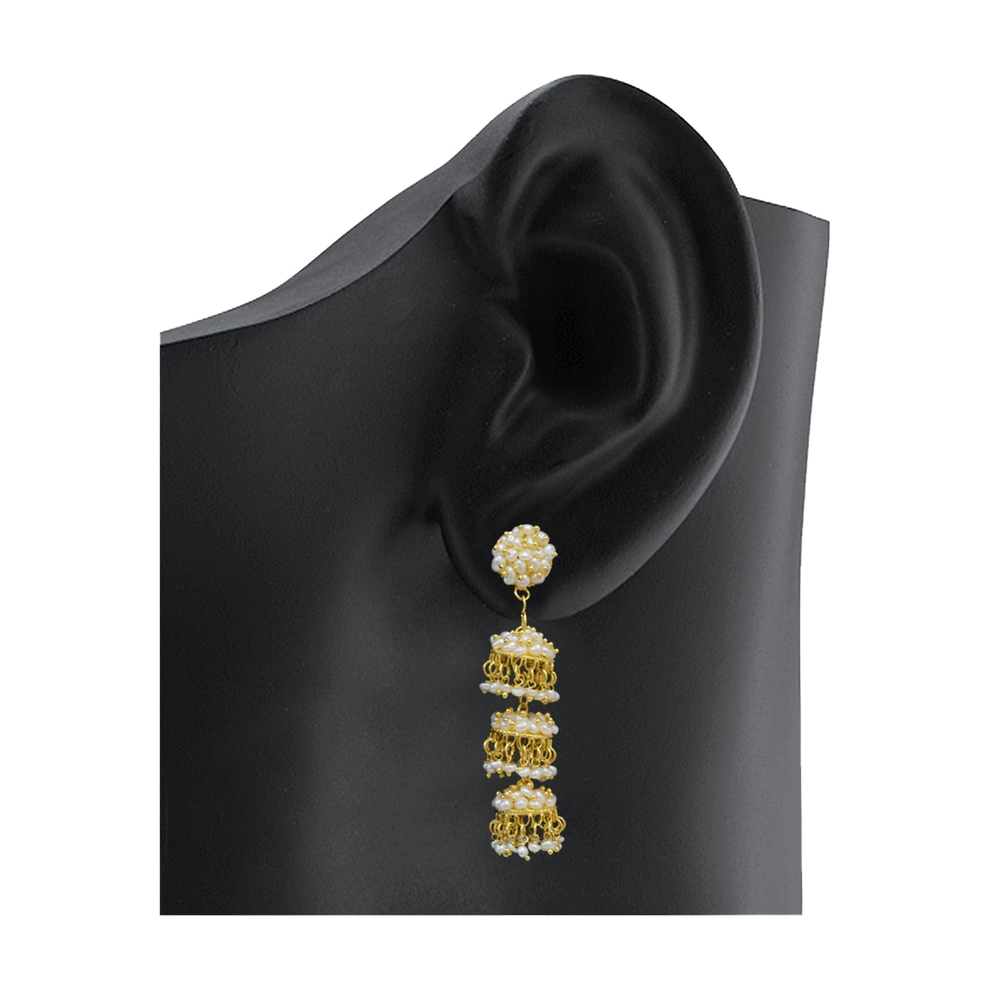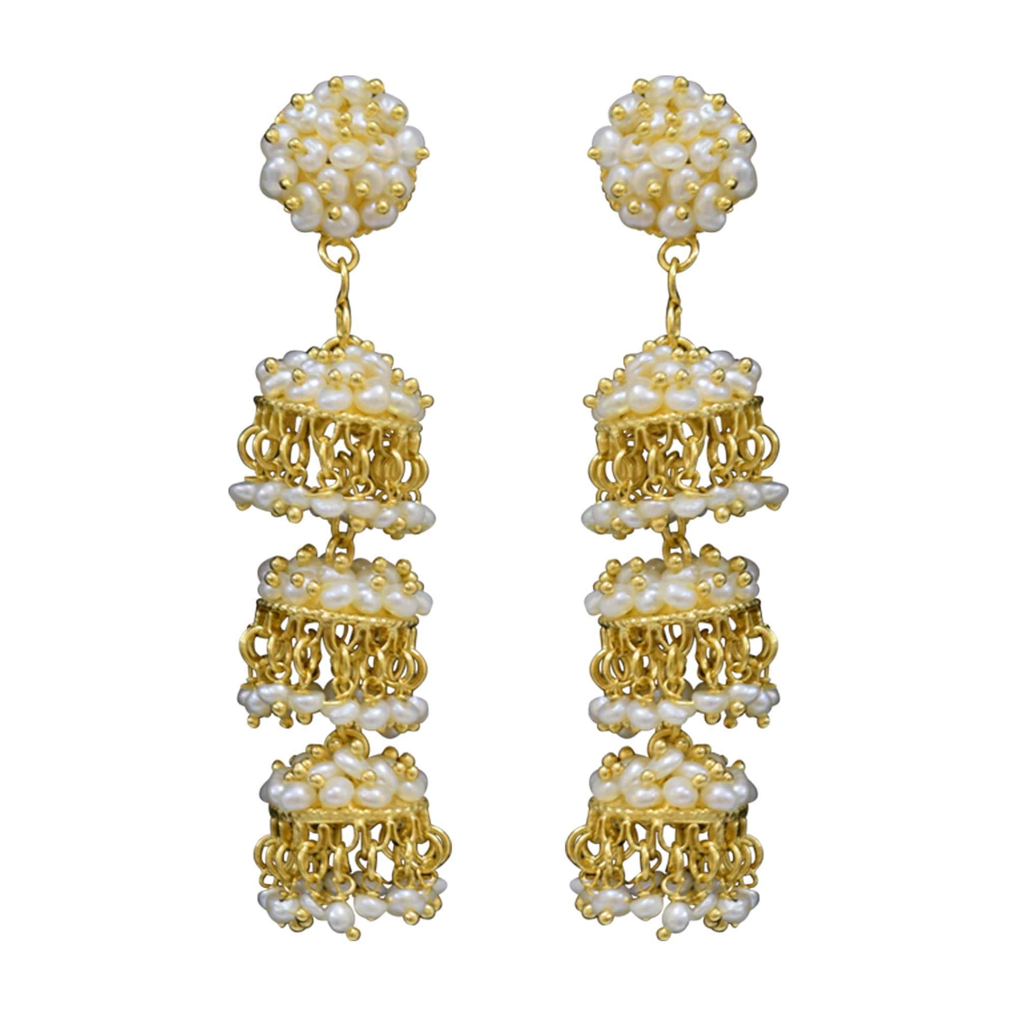 Triple decked seed pearl jhumkas