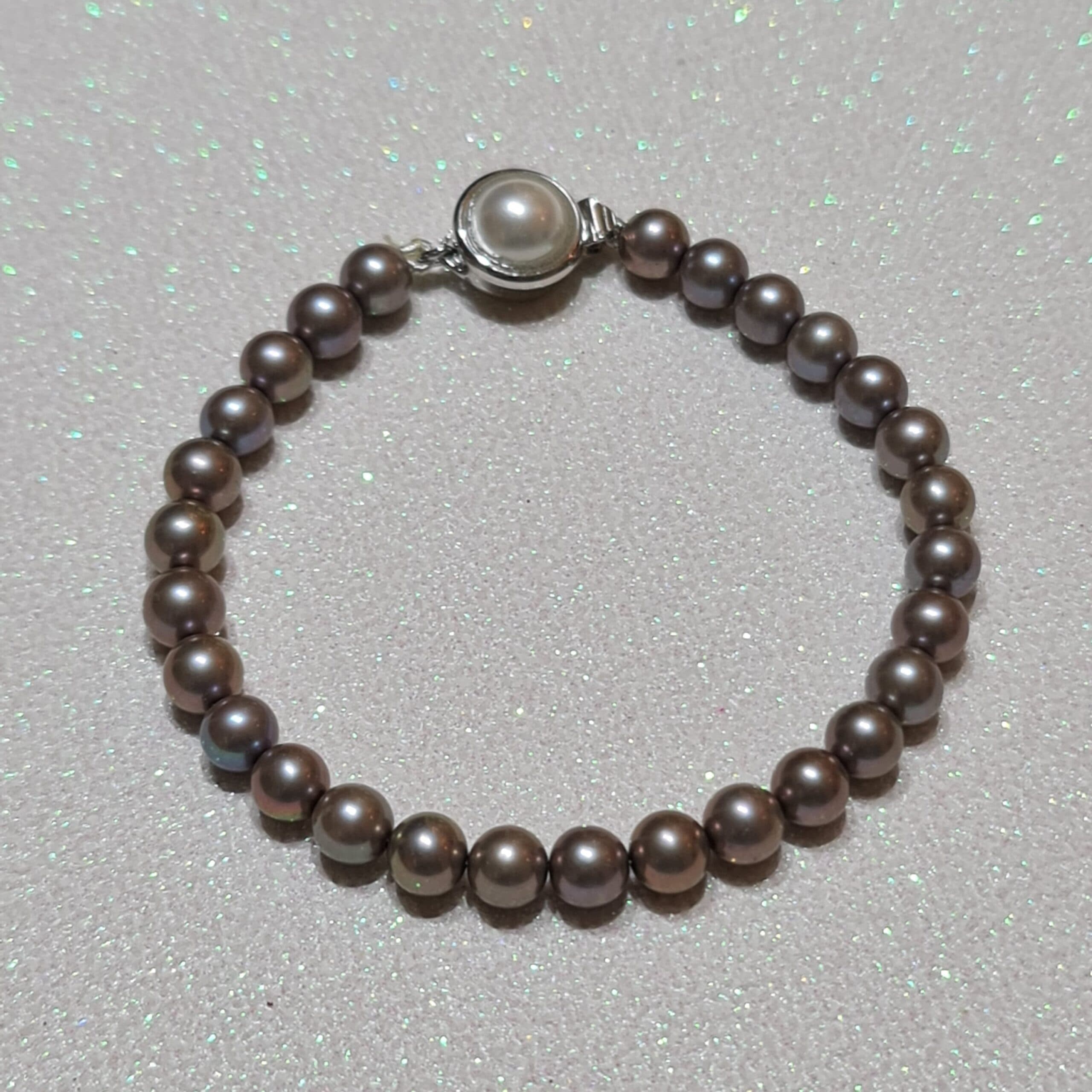 Unique 6.5mm Grey Round Pearl Bracelet With Brown Tinge