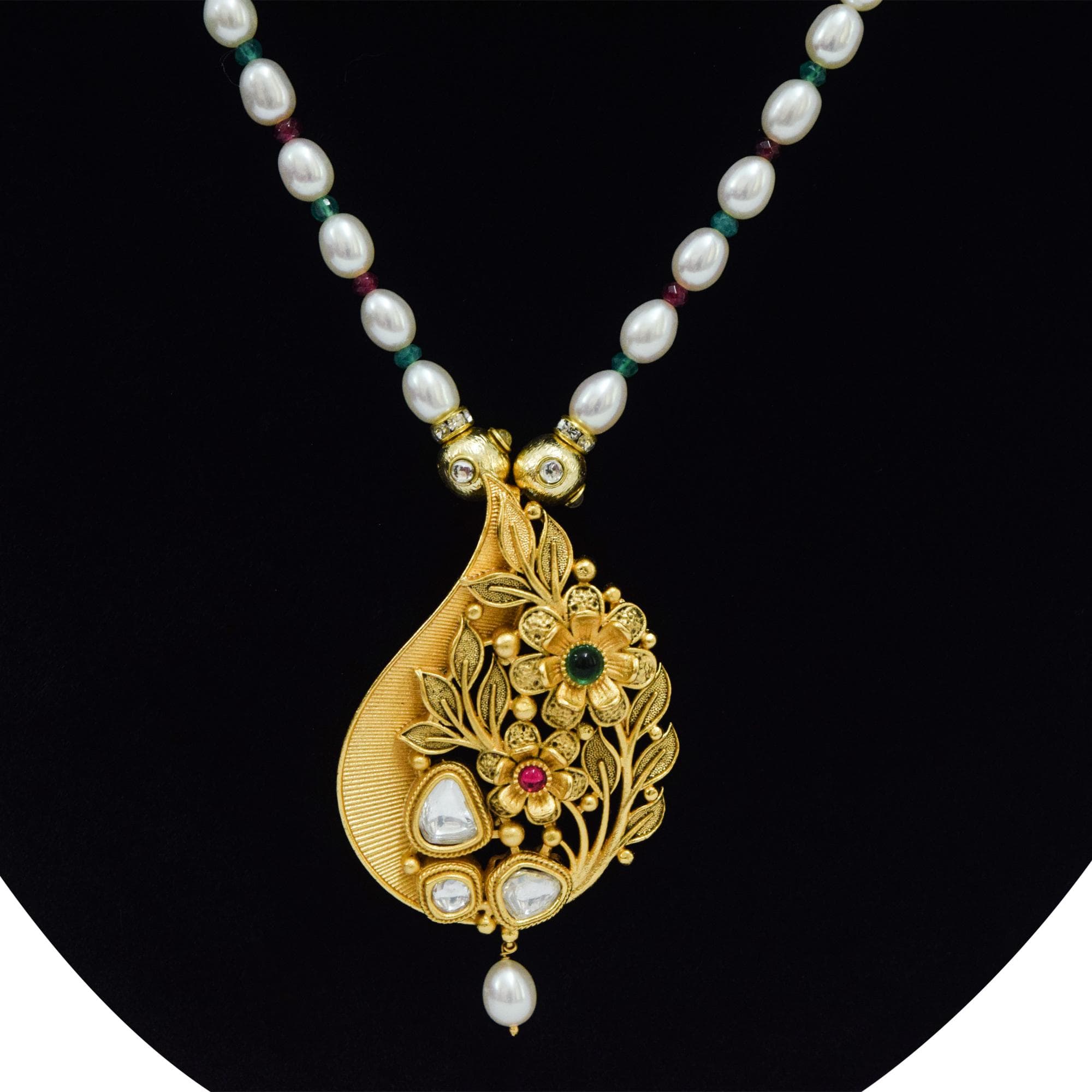 Vintage Collection - Kundan Studded Pendant in finest of 6mm long oval pearls