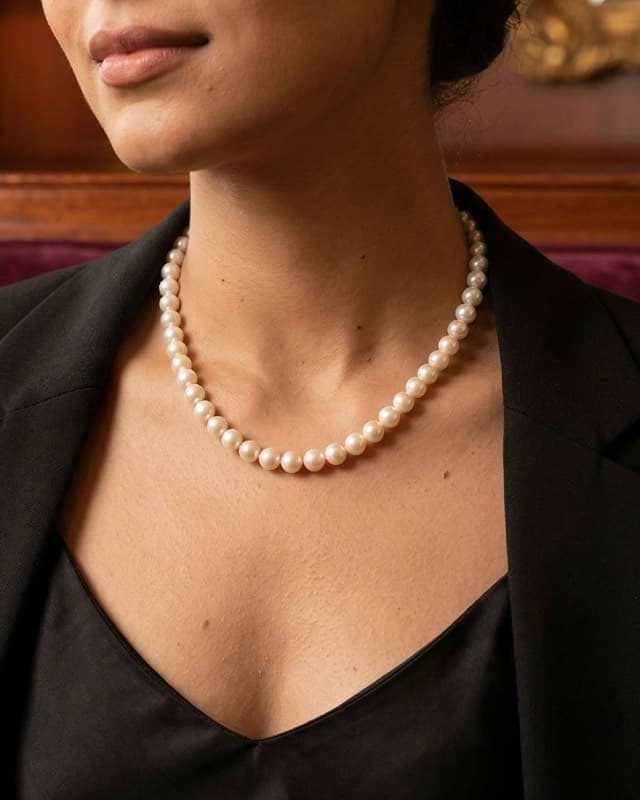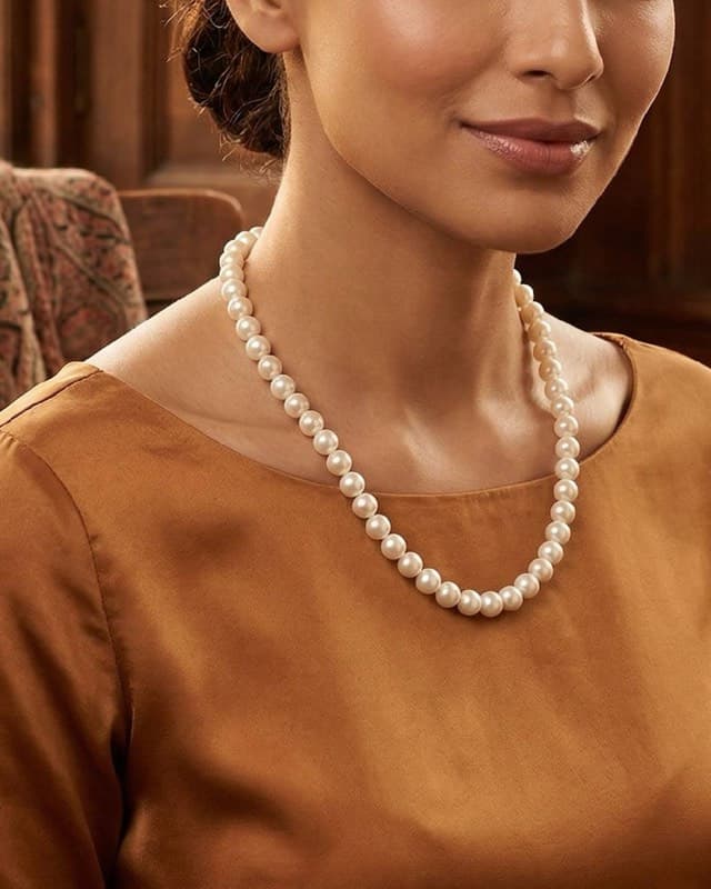 8mm is the sweet spot for pearl necklaces. Large enough to catch the light from across the room, refined enough for everyday wear. Every pearl in this set is hand-selected for consistent size, shape, and lustre, then strung with individual knots between each pearl for durability and drape.