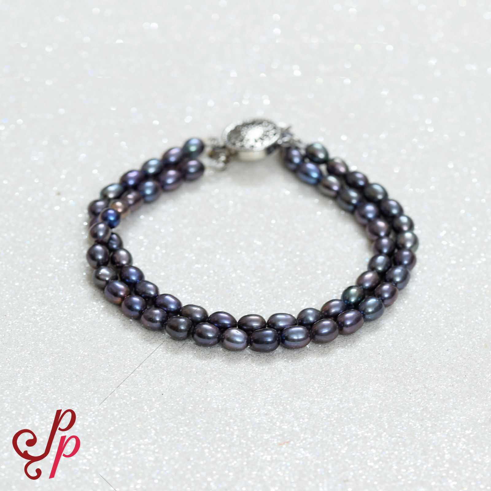2 Lines Pearl Bracelet in 4mm long multishaded black pearls