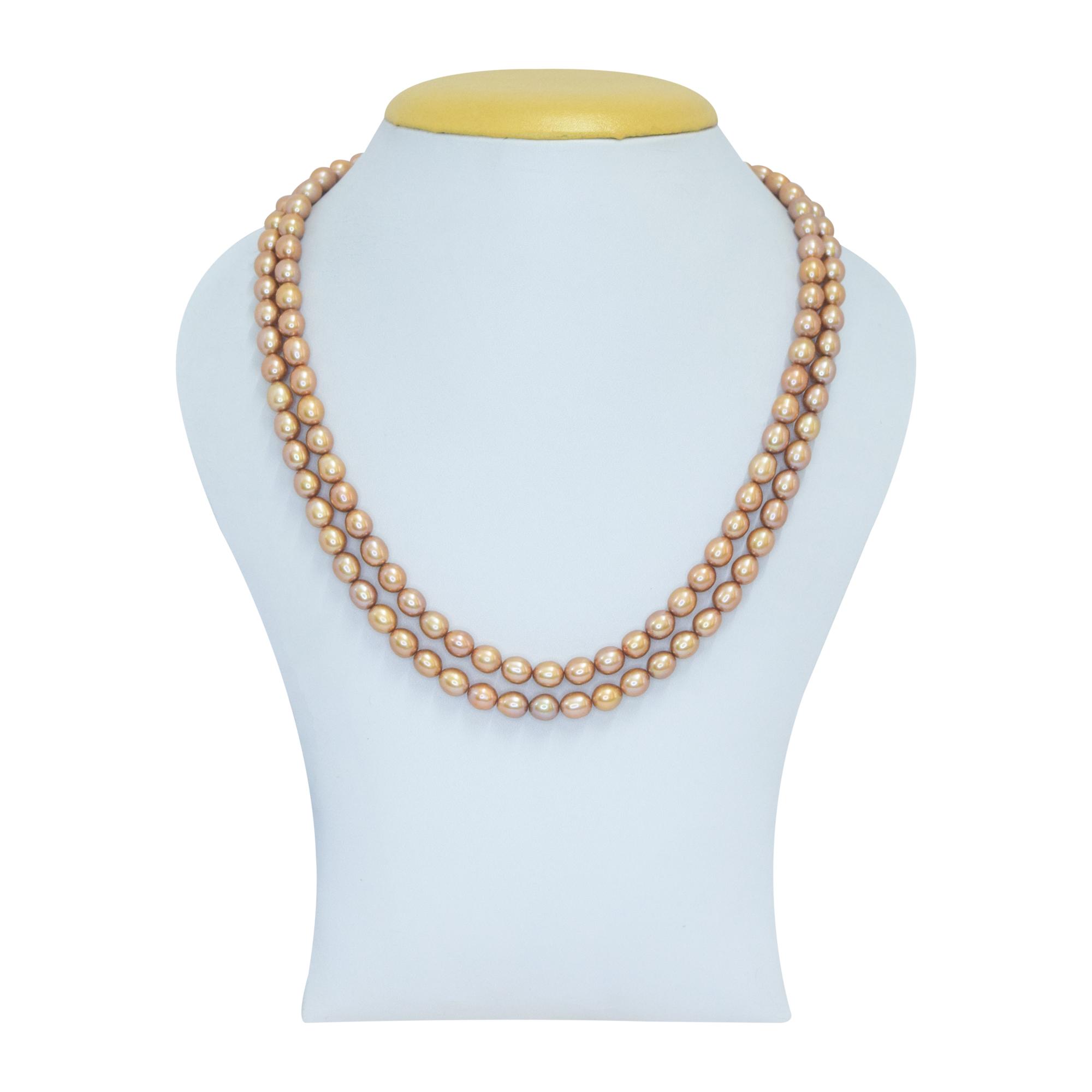 The necklace is beautifully crafted with 2 rows of oval antique gold dyed pearls.