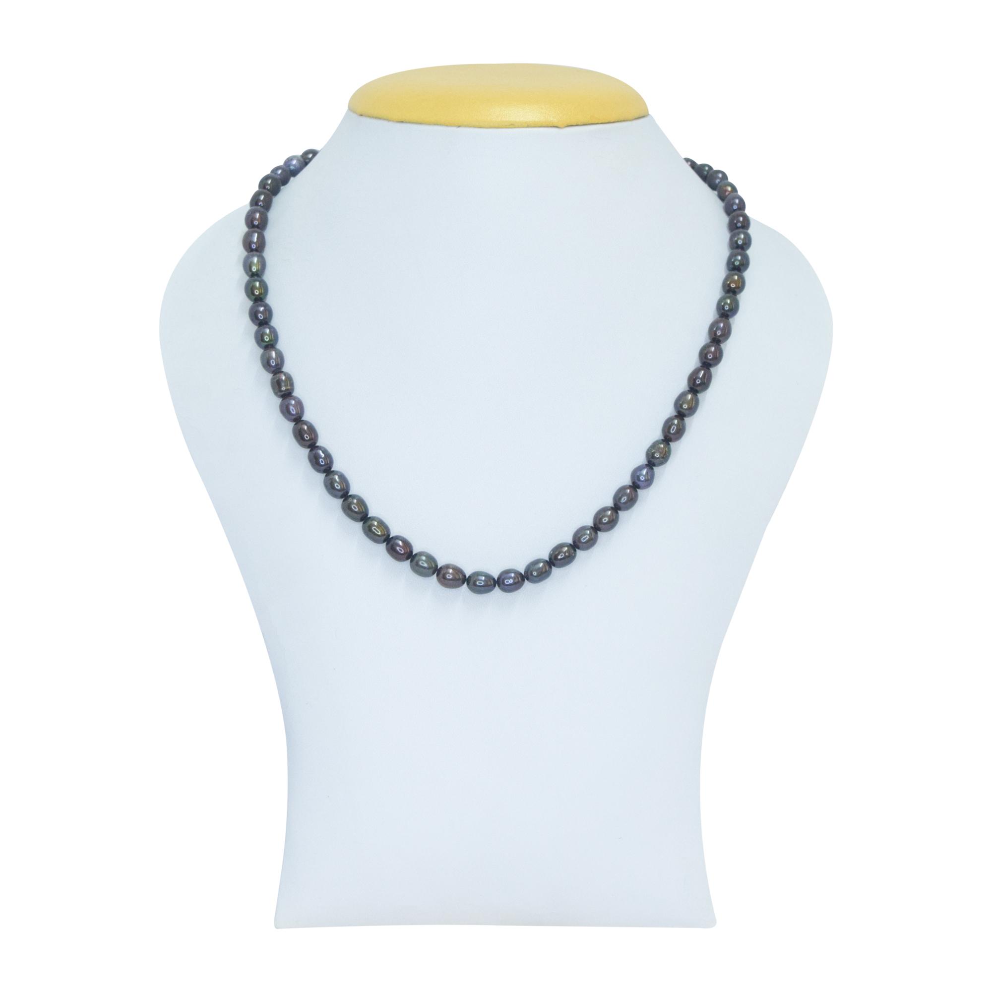 Lush 16 Inch Forest Green 6.5mm Oval Pearl Necklace