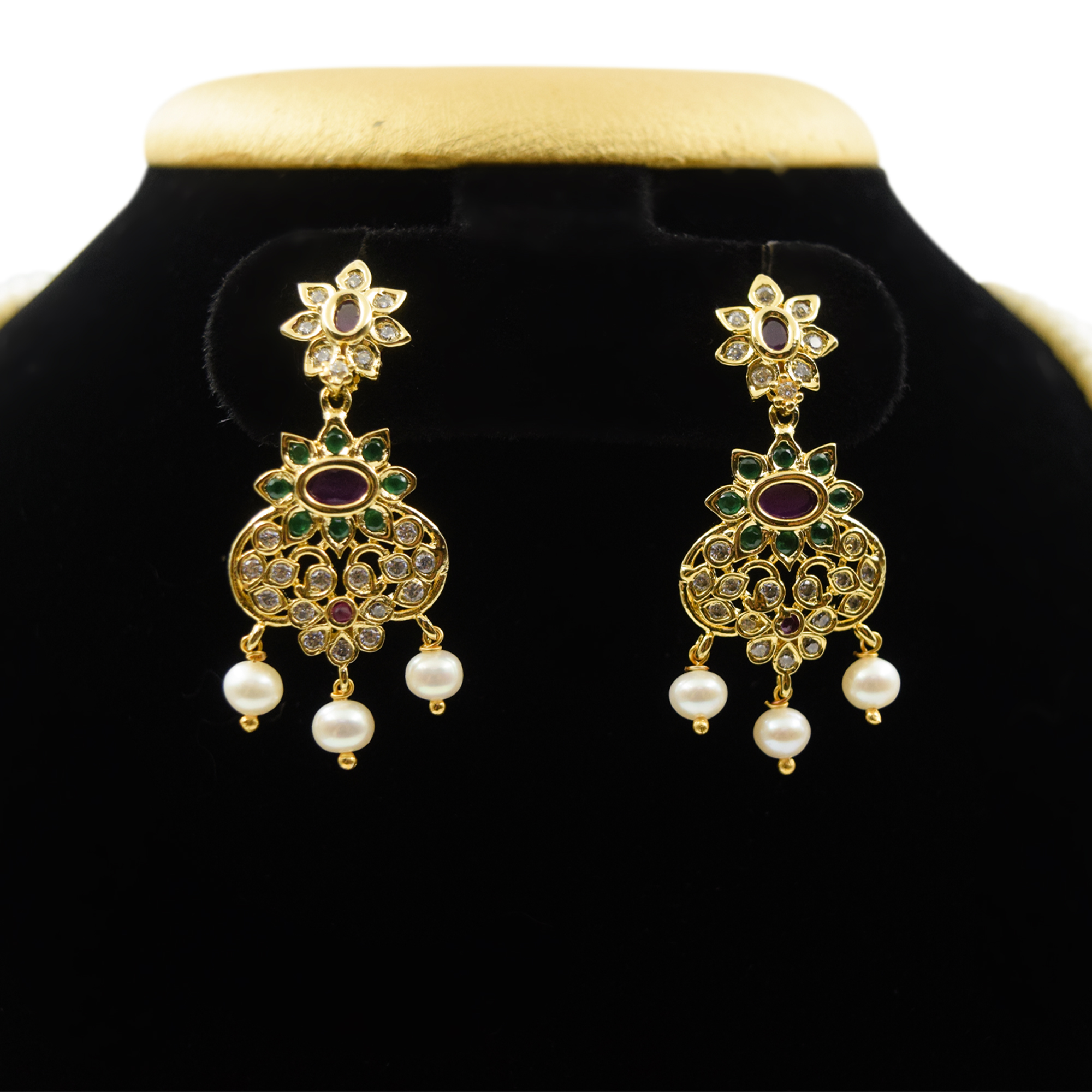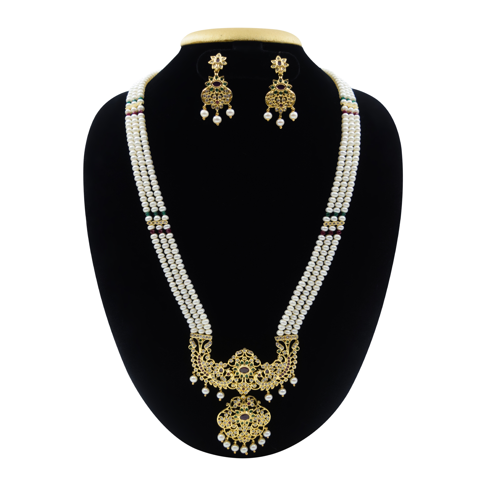 The spacers used in this haar are SP ruby, SP emerald and zircon studded Patti.